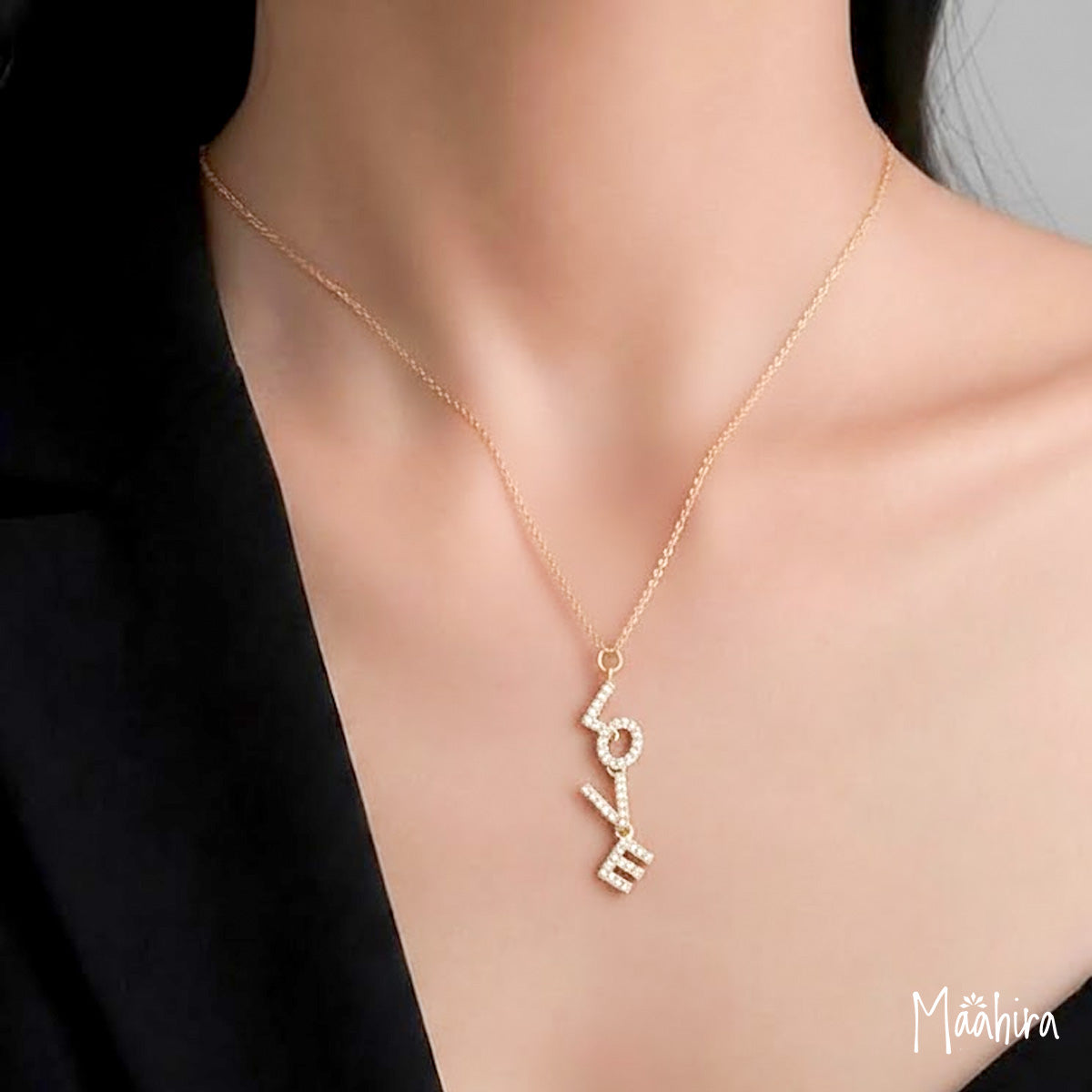 With the help of this lovely diamond necklace, spell it out. The word "love" is sculpted in a hanging style and set in 2.252 gm of 14k yellow gold with 0.126 carat of diamonds in this charming design, which weighs 2.277 gm.