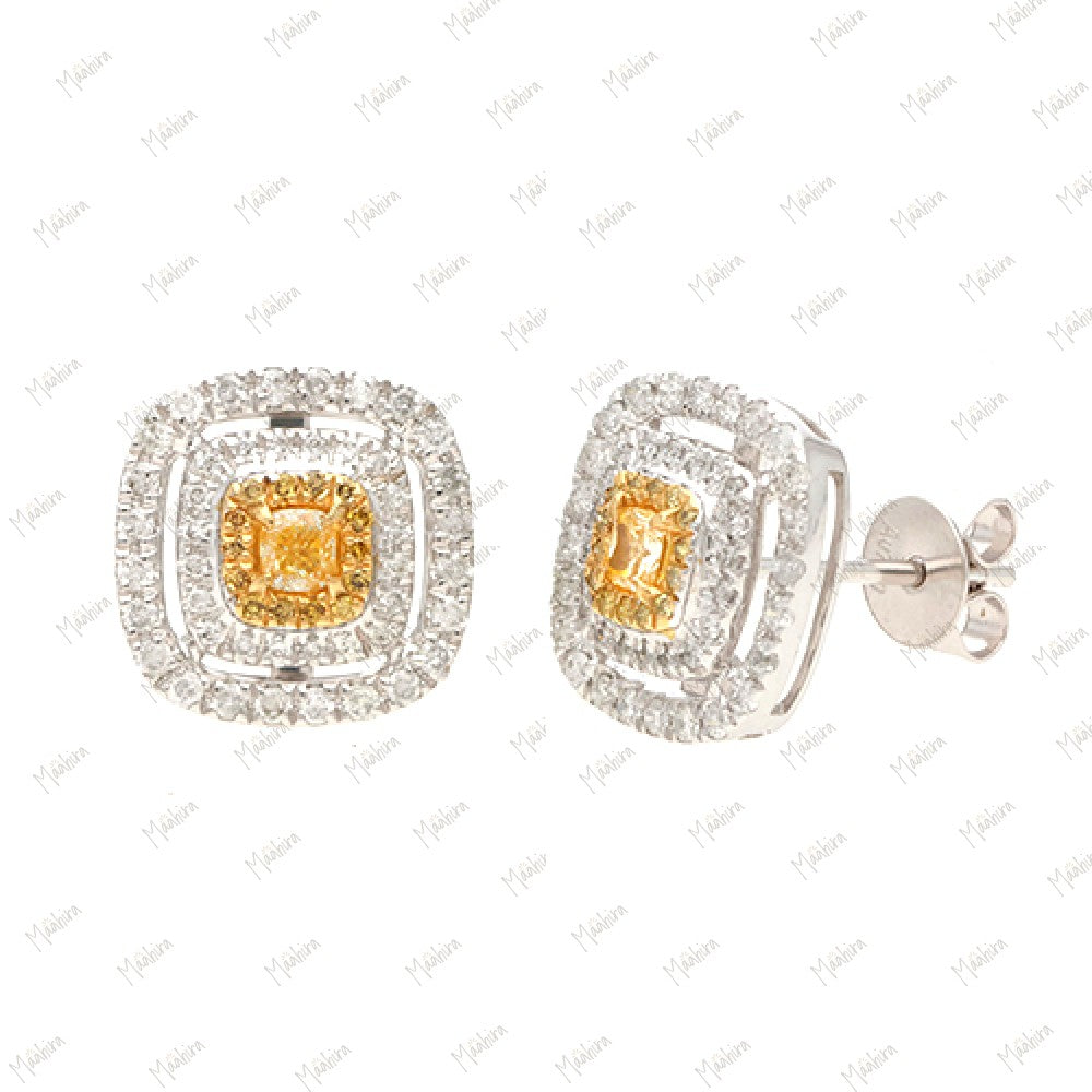These 18K White Gold Yellow Diamond Studs (10.50mm) are crafted with a gross weight of 2.605g and feature 0.70ct of brilliant diamonds, beautifully set around a vibrant yellow center stone. Made with 2.465g of pure 18K gold, these studs offer a luxurious blend of sparkle and sophistication, perfect for elevating everyday style or adding elegance to special occasions.