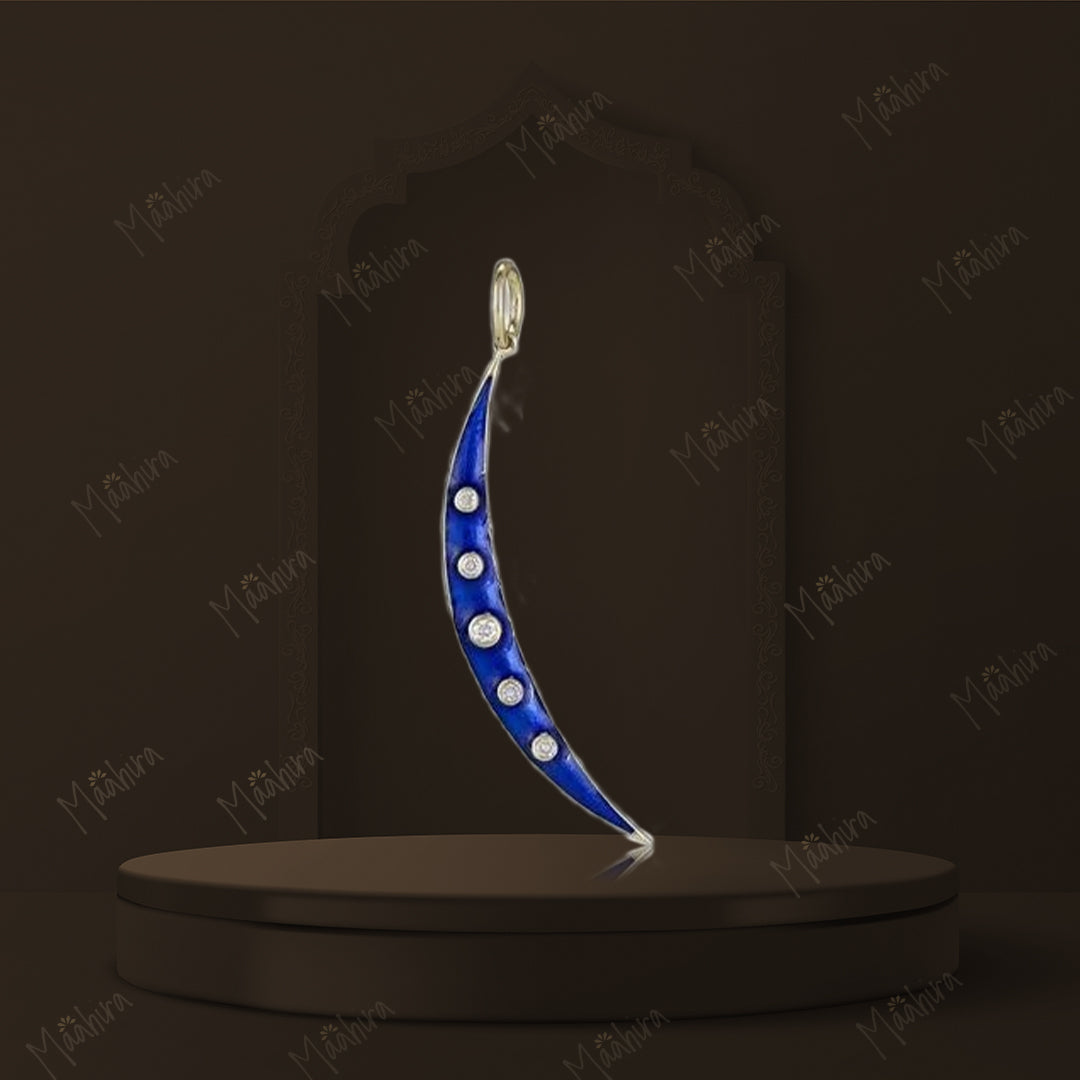 The blue enamel pendant appears to be in a dream when set in 0.053 carats of diamonds. Because of its stunning brilliance, this 1.88gm piece is set in 1.843gms of 14K yellow gold.